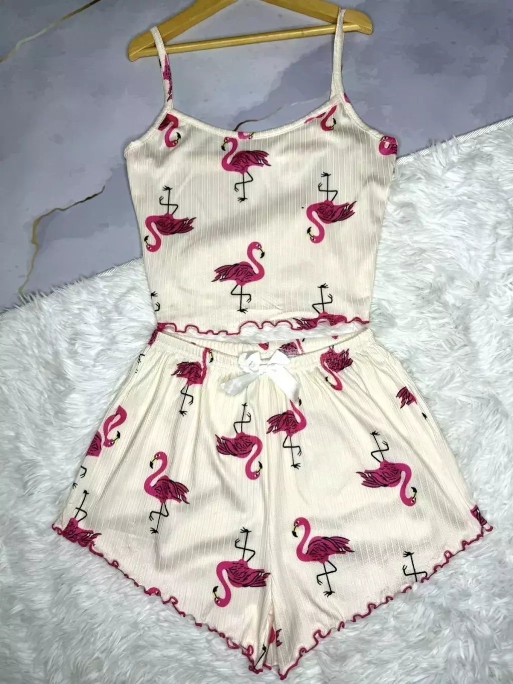 Conjunto MORLEY TOP + SHORT PIJAMA IMPORTADO, compuesto por un top musculosa y un short que destacan por sus terminaciones de calidad y un diseño único.